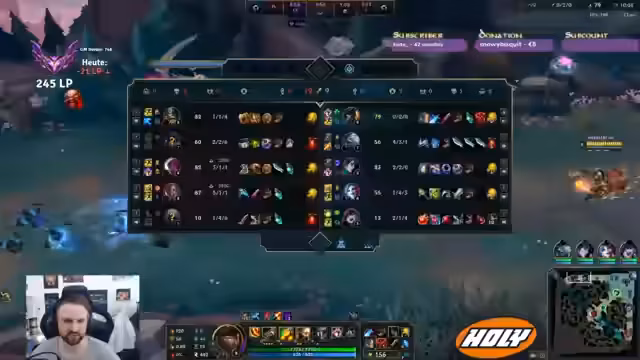 00:42:10Es wird über einen Großeinkauf von Zero Spezi bei Flaschenpost gesprochen, da es ein Angebot gab. Es wird betont, dass zuckerhaltige Getränke vermieden werden, da Kalorien trinken als unangenehm empfunden wird. Im Spiel wird das Matchup gegen Olaf als schwierig eingeschätzt, aber es wird darauf hingewiesen, dass das Team im späteren Spielverlauf besser skaliert und Olaf mit dem Passiven geburnt werden kann. Es wird überlegt, ob Captain Gangplank der Standard-Skin ist. Die Spielweise gegen Olaf wird als entspannt beschrieben, wobei die Barrels in die gegnerische Richtung verlagert werden. Der Fokus liegt auf mehr Schaden durch Punkt Q. Es wird ein Healing-Effekt bei Olaf bemerkt, der durch Pods und Cookies verstärkt wird. Es wird überlegt, ob ein neues TFT-Set gespielt werden soll, nachdem das aktuelle Spiel beendet ist. Der aktuelle Spielstand wird analysiert, und es wird festgestellt, dass ein Comeback möglich ist. Olaf ist unten, was eine Chance bietet. Es wird überlegt, wie viel Schaden durch den W-Skill von Gangplank verursacht wird und ob es sich lohnt, gegen Olaf zu spielen.