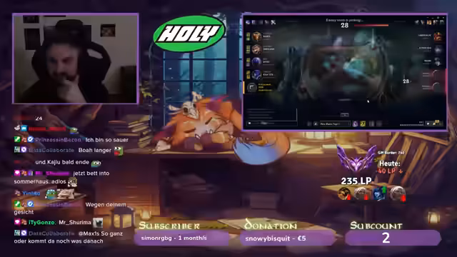00:36:29Der Streamer beklagt seine Pechsträhne und bezeichnet seine Spiele als verflucht. Er äußert Unverständnis darüber, wie er so schlechte Spiele haben kann. Nach einer Diskussion im Chat entscheidet er sich, Karma auf der Top-Lane zu spielen und überlegt sich seine Strategie gegen Pantheon im Early Game, wobei er plant, zu pushen. Er kommentiert den Skin seines Charakters und freut sich über einen gelungenen Spielzug. Der Streamer analysiert Spielsituationen, wie das Farmen und den Einsatz von Fähigkeiten. Er plant seinen Item Build und überlegt, ob er Malignance oder andere Items kaufen soll. Der Streamer kommentiert die Aktionen seiner Mitspieler und freut sich über gelungene Spielzüge. Er äußert Bedenken wegen der Pantheon Ulti, aber sein Team kann Pantheon besiegen.