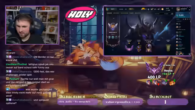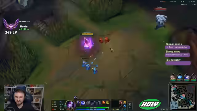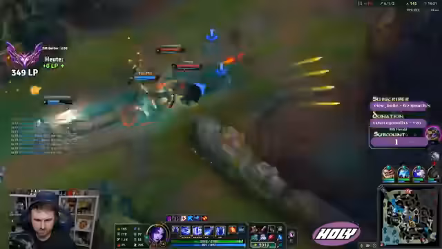00:32:57Der Streamer interagiert mit der Community, indem er nach deren LP fragt. Er erwähnt seine eigene LP-Probleme und eine angebliche Losingstreak. Er kündigt ein neues Highlight-Video an und bittet die Community, es anzuschauen und zu liken. Er kündigt auch an, seinen Shadowban auf YouTube brechen zu wollen.