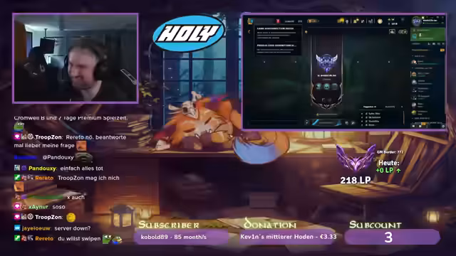 00:11:47Der Streamer beschreibt seine Erfahrungen im Spiel, besonders mit dem Champion Riven. Er findet den Champion sehr stark und gebrochen, besonders im 1v1, und erwähnt, dass es kaum Gegen gibt. Er spricht über Schwierigkeiten im Spiel, wie die Einstellungen zurückgesetzt wurden, und technische Probleme mit dem Stuhl und der Monitorhöhe, die er anpassen muss.