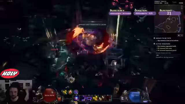 04:25:30Der Streamer freut sich über 40% mehr Duplicate Chance und eine erhöhte Spawnrate für Possessed Nemesis Encounters. Es wird festgestellt, dass man sogar in Loot Lizards reinskillen kann, um einzigartige Gegenstände zu erhalten. Champions haben eine Chance, von blauen oder grünen Loot Lizards verstärkt zu werden. Es wird nachgefragt, worauf die Zuschauer geskillt haben und ob sie die Memory Ember kaufen, finden oder nie benutzen. Der Streamer sucht immer noch nach einer Einhand-Axt und fragt sich, wo er seine Resistenzen sehen kann. Er farmt Volt-Bosse und überlegt, ob er Increased Void Damage benutzen soll. Er nimmt Crit Multiplier. Er hasst den Endboss in Lagoon und Harriot und fragt sich, wie man Lizard Shrines findet. Es wird die hohe Armor des Charakters erwähnt. Der Lootfilter wird angepasst, um nur noch relevante Items anzuzeigen, darunter Unique Idols, Exalted Items und bestimmte Affixe wie Stärke, Vita und Resistenzen.