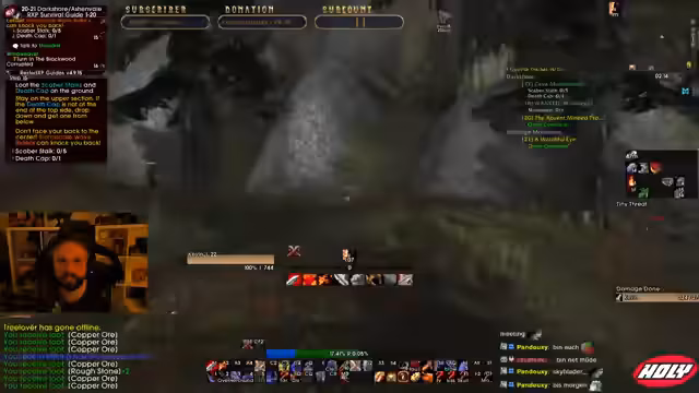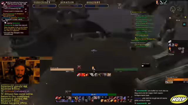02:08:20Der Stream endet mit den Plänen für die restliche Spielzeit. Das Ziel bleibt das schnelle Erreichen von Level 19, um später Deadmines besuchen zu können. Der Streamer plant, sich bei einem Schmied nach einer speziellen Waffenkette zu erkundigen, die ihm im PvP helfen könnte. Trotz einiger Rückschläge und technischer Hindernisse bleibt er motiviert und fokussiert auf das Erreichen seiner Ziele im Spiel und die Unterstützung seiner Gilde.
