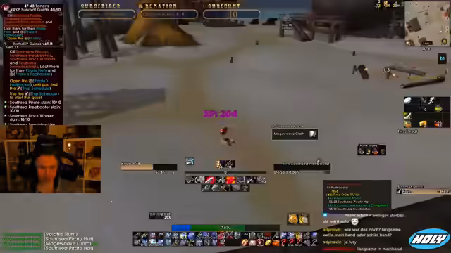 08:47:48Der Streamer reflektiert über seine sehr langsamen Level-Erfahrungen der letzten Tage, die sich schmerzhaft angefühlt haben. Parallel dazu berichtet er von einem unglücklichen Vorfall im PvP, bei dem er versehentlich einen anderen Spieler getötet hat. Dieser Vorfall führt zu einer Diskussion über Verhaltensregeln im Spiel und Verwirrung in der Gilde.