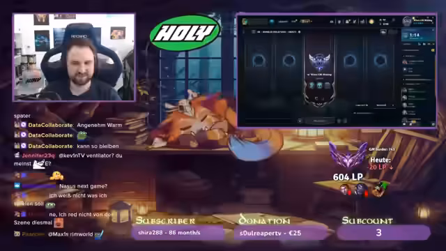 00:00:37Der Stream beginnt mit der Analyse eines Reports, bei dem der Name des bestraften Spielers nun angezeigt wird. Der Streamer erinnert sich an ein spezifisches Spiel vor etwa sechs Tagen mit einem Lilia-Spieler, der eine Strafe erhielt. Währenddessen werden technische Probleme wie ein unklares Geräuschen und Mikrofonstörungen angesprochen, ohne dass die Ursache gefunden wird. Es folgt eine Unterhaltung über verschiedene Snacks und der Anerkennung von Zuschauern, wie zum Beispiel 'Pixelsauce, du Stinker'.