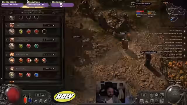 02:08:30Der Streamer fragt sich, woher er weiß, dass sein Banner gefüllt ist und ob er es immer platzieren kann. Er muss noch etwas mit seinem Wort machen. Er hat versehentlich alle seine Einstellungen geändert und ist frustriert darüber. Sein Button für Portale ist verschwunden. Er braucht mehr Stärke und Leben. Der Streamer fragt sich, wie er das Banner benutzen soll und wie er die Dinger fressen soll. Er hatte vorhin keine FPS-Probleme. Der Streamer beschreibt seinen aktuellen Build als Schauter, bei dem er die ganze Zeit schreit und die Gegner durch Corrupting Cry einen Bleed Stack bekommen. Durch Warbringer hat er keinen Cooldown auf Warcries und lässt die Korpses explodieren. Er wartet eigentlich nur auf den Druiden. Er stirbt und stellt fest, dass seine Feuerresi zu niedrig ist. Er hat keine Runen, um dies zu ändern. Der Streamer überlegt, auf den Shield-Wall-Build zu wechseln, da ihm der aktuelle Build zu riskant erscheint. Er muss unbedingt einen Supportjam 5 finden.