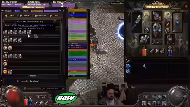 03:32:08Der Streamer experimentiert mit einem Chaos Orb, um Energy Shield oder Life Rack wegzubekommen, und hofft auf einen guten Step. Er verkauft Items, um Gold zu erhalten und überlegt, ob er mit dem aktuellen Build weiterspielen oder schon in Richtung des analysierten Builds skillen soll. Er bereitet alles für den Umskillen vor, um es später nicht so teuer zu machen. Er plant, die Gebiete mit den Skillpunkten abzuschließen und hofft, bis dahin mehr Feuerresi zu haben. Er analysiert die Gebiete hinsichtlich ihrer Elementar-Resistenzen. Er entdeckt, dass er nur 1% Fire Resi hat und Lightning Cold ziemlich capped sind. Er überlegt, ob er sich mehr holen sollte und betont, dass er One-Shotten kann und bis zu 3k Damage machen kann. Er hofft auf weitere Support-Gems und glaubt, dass die ganzen Gems für die Auren am Anfang nicht so wichtig sind. Er erreicht seine erste Map, Vorgast, und freut sich über die vielen Drops. Er überlegt, ob er sich bei einer Erkältung ausruhen oder durchmachen soll.