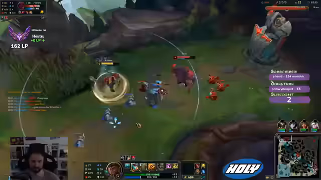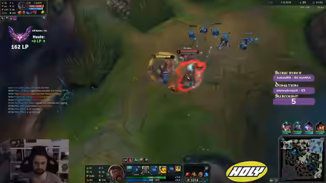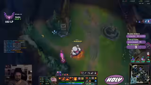 00:02:25Die Komp des Streamers setzt sich aus Sivir (Top), Kassadin (Jungle), Viktor (Mid) und Aphelios/Ashe (Bot) zusammen. Das Spiel beginnt mit der Laning-Phase. Der Fokus liegt auf der Mid-Lane, die vom Streamer mit Viktor kontrolliert wird. Es kommt zu early Level-Fights und Tausch. Der Streamer konzentriert sich darauf, die Wave zu managen, Vision zu setzen und den Gegner Orianna zu zwingen, defensiv zu spielen. Er erkennt einen Fehler in der Positionierung des Teams und erkennt an, dass die Gegner im Mittelfeld Vision haben.