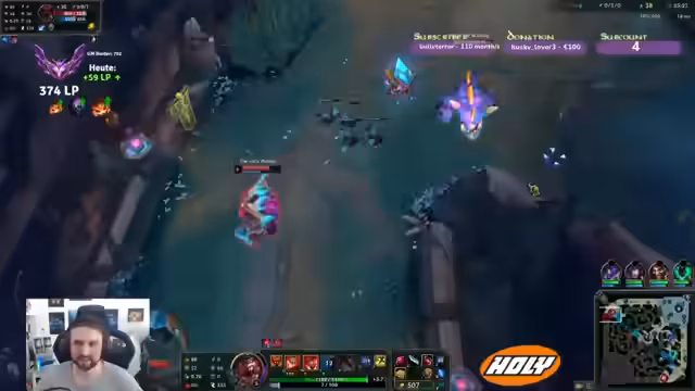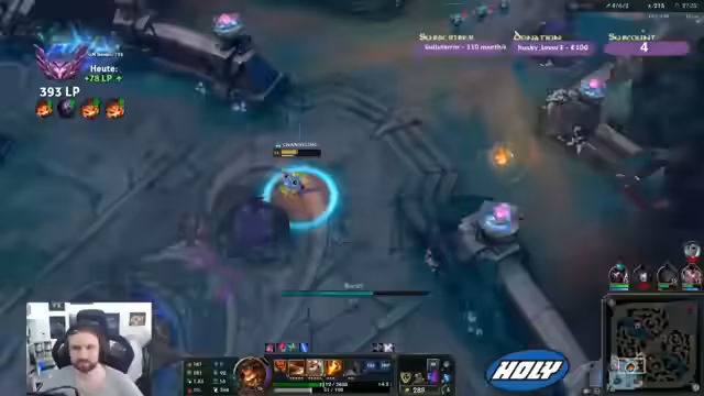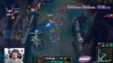 00:23:12Im Fokus steht das Gameplay auf der Toplane. Gegen einen Yasuo entscheidet sich der Streamer für die Rune 'Starax'. Er agiert in der Lane sehr vorsichtig und erkennt an, dass das Match-up durch Fleet Footwork fairer geworden ist. Er macht deutlich, dass er keine Möglichkeit sah, den Yasuo mit dessen Ultimate zu töten, da die Minions dessen Flankierung verhinderten.