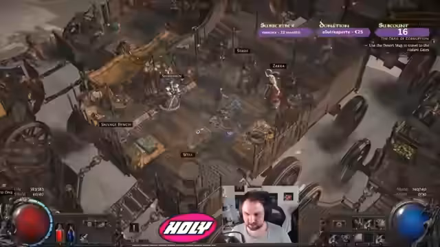 00:00:36Nach dem gewonnenen Playoffs-Finale und dem Aufstieg in Div4 steht eine entspannte Session an. Zunächst denkt der Streamer an einen Path of Exile-Charakter, bevor er sich spontan für den Crossbow-Build von Ben entscheidet. Der Build, der mit Lightning Damage arbeitet, scheint ein attraktives Potenzial zu bieten und wird fortan für den Rest des Streams verfolgt. Dabei wird auch über potenzielle Nahrung wie Nudelsalat nachgedacht und die laufende Disney-Plus-Serie erwähnt.