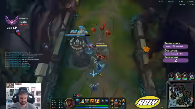 00:01:50Der Stream beginnt mit Begrüßungen und einer allgemeinen Stimmung. Es werden mehrere Viewer im Chat mit persönlichen Nachrichten erwähnt. Ein zentrales Thema zu diesem Zeitpunkt ist die aktuelle Meta im League of Legends. Der Streamer hofft auf einen Shake-up in der Meta nach den Worlds, da er das Gefühl hat, dass einige Champions wie Jax und Sylas zu dominant sind. Er diskutiert Matchups und Builds, wie beispielsweise gegen einen Wladimir Top, und äußert sich zu seiner Spielweise und seinen Item-Choices.