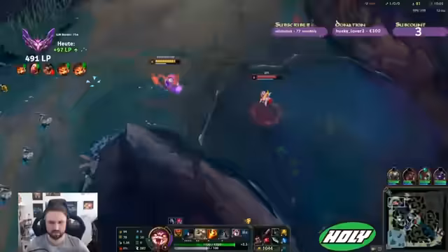 00:09:32Im Spiel etabliert sich der Streamer erfolgreich in der Laning-Phase und erreicht durch cleveres Farmen und eine gute Positionierung eine solide Gold- und CS-Vorsprung. Die Kommunikation im Team läuft reibungslos, und es kommt zu mehreren koordinierten Teamkämpfen, bei denen der Streamer mit seinem Gnar durch hohe Schadensoutput und gute Positionierung entscheidende Vorteile für sein Team sichert. Es kommt zu einem Map-Split, um den Druck zu verteilen.