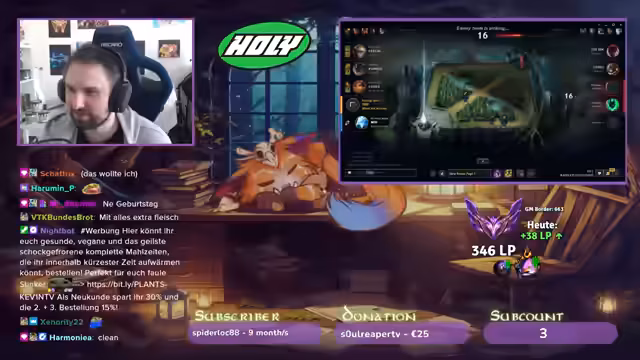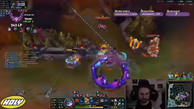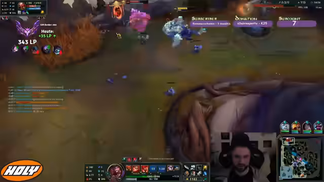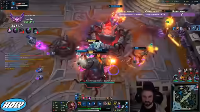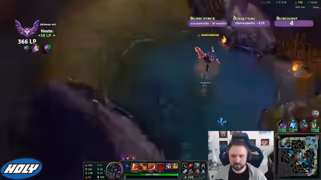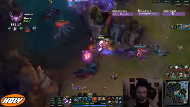 00:17:16Während eines Spiels mit Fiora hatte der Streamer die Kontrolle über das Lane gegen den TF, verlor diese jedoch durch einen missglückten Move, als er in dessen Weh reinlief. Trotzdem zeigte sich optimistisch und plante, Morellonomicon und Rabadons zu bauen, da die Gegner wenig MR hatten. Später im Spiel ermöglichte sein Eingreifen ohne Flash, kombiniert mit dem Nashor, den Sieg im Teamfight und anschließend die Eroberung des Baron Nashor.