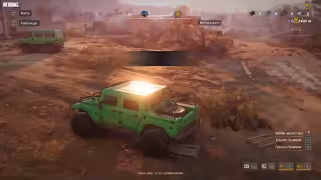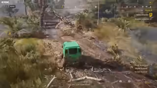 01:53:21Endlich trifft Kreis ein und die beiden steigen gemeinsam in das Spiel ein. Sie wählen ihre Fahrzeuge, einen Jeep und einen Dodge, und gestalten ihre Lackierung mit individuellen, witzigen Namen wie 'Richtiger Mother Trucker'. Nach anfänglichen technischen Schwierigkeiten bei der Steuerung und Einladung ins Spiel beginnt die erste Mission. Sie müssen ein Gebiet absuchen, Objekte mit einem Scanner finden und Straßen für den Baustellentransport freimachen. Der cooperative Charakter des Spiels wird durch die gemeinsame Nutzung von Fahrzeugen und der Bewältigung von Aufgaben deutlich.