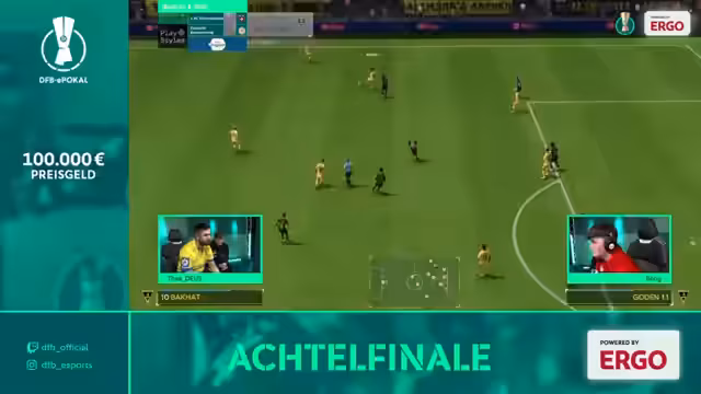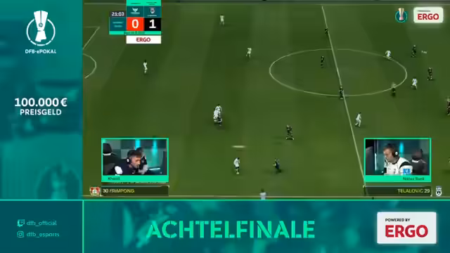 02:25:02Fokus X Delay Sports sichert sich den Einzug in die Top 8 des DFB-ePokals in Frankfurt nach einem Sieg gegen Giston. Eldos erzielte das entscheidende Tor. Trotz einer kämpferischen Leistung verlor Peter für Borussia Mönchengladbach eSports das Spiel gegen Eldos. Der Sieg von Fokus X Delay Sports ist verdient, besonders da Pavel eine starke Leistung zeigte. Das Team wird am Offline-Event auf dem DFB-Campus teilnehmen. Es wird spekuliert, dass andere E-Sportler bereits im Vorfeld Wünsche bezüglich ihrer Gegner äußern könnten. Ebru interviewt Eldos, der die starke Leistung von Pavel Bist hervorhebt und die Freude über die Finalqualifikation zum Ausdruck bringt. Eldos äußert den Wunsch, nicht gegen Leipzig und Umut spielen zu müssen, da er eine enge Beziehung zu Umut pflegt.