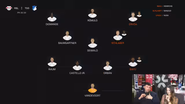 00:07:10Der Stream beginnt mit technischen Einrichten und Begrüßungen. Die Analysten wenden sich sofort den Spielen des 27. Spieltags zu, beginnend mit dem Duell RB Leipzig gegen Hoffenheim. Als Hauptthema wird erwähnt, dass beide Teams in der Saison bisher die wenigsten Rotationen hatten und ihre Startelfs meist unverändert lassen. Die Diskussion dreht sich um die möglichen Aufstellungen bei Leipzig, wobei Baku auf der Rechtsverteidigerposition favorisiert wird, und bei Hoffenheim, wo eine unklare Mittelfeldformation nach der Verletzung von Andrej Kramarić erwartet wird.