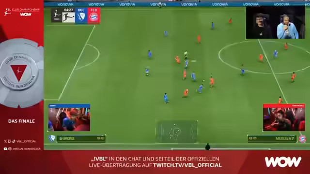 04:41:33Borussia Mönchengladbach sichert sich die Pole Position im Kampf um den Halbfinalplatz im VBL Club Championship Finale. Nach einem frühen 2:0-Rückstand startet Gladbach stark und setzt ein frühes Statement mit einem 1:0 nach sechs Minuten. Koray, der als einer der besten 1v1-Spieler gilt, startet überraschend mit einem 0:1 und verliert das 2v2, was die Situation für die Münchner zusätzlich erschwert. Bayern München, die in der laufenden Saison nur eine Niederlage kassiert haben, stehen nun mit dem Rücken zur Wand. Lukas von Borussia Mönchengladbach spielt stark und erzielt ein 2:0. Trotz der Ausgangslage und der Favoritenrolle der Bayern, die als Geheimfavorit hinter Leipzig galten, droht ihnen das Ausscheiden in der Zwischenrunde. Es wird betont, dass es am Ende darauf ankommt, was im Finale geleistet wird, und dass Hoffenheim trotz einer weniger erfolgreichen Regular Season ebenfalls in der Zwischenrunde steht.