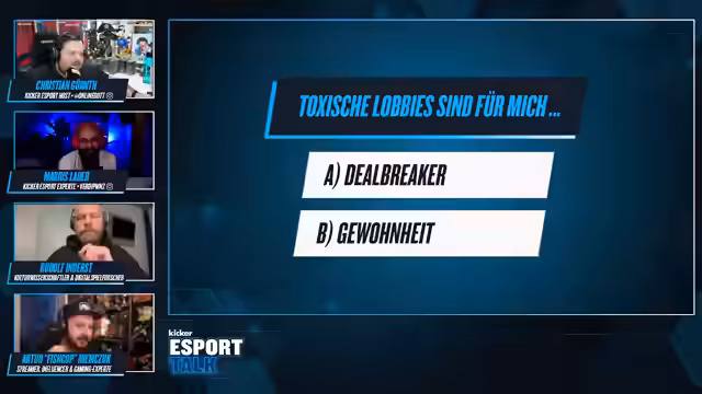 00:05:20Der KICKER eSport Talk startet und thematisiert das Spiel Arc Raiders, fragend, ob es sich um einen kurzfristigen Hype oder nachhaltig erfolgreichen Titel handelt. Moderator Christian begrüßt die Experten Marius (Moderator/Streamer), Rudolf (Professor für Game Design) und Arthur (Community Manager bei HeadUp Games). Die Gäste stellen sich kurz vor und legen ihre jeweiligen Perspektiven auf das Spiel offen. Rudolf betont sein Design- und Studienerfahrung, Marius seinen Fokus auf kompetitives Spielen und Turnieraufbau und Arthur seine Rolle als Community-Manager und Causal-Gamer.