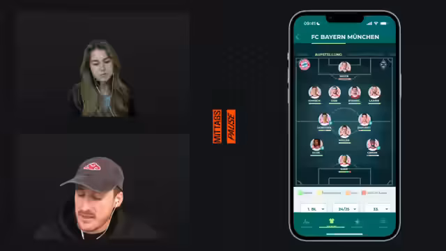 00:20:01Die konkrete Aufstellung für die Challenge wird nun spielerisch besprochen. Für Bayern wird der Einsatz von Ulises Garcia als gesetzt betrachtet, während bei den Stürmern eine Umfrage im Chat zwischen Thomas Müller und Kane durchgeführt wird, wobei Müller siegt. Als dritten Spieler wird Joshua Kimmich favorisiert. Im Angriffsschema wird Kramaric von Hoffenheim fest eingeplant. Bei der Verteidigung wird nach einer günstigen Option gesucht, wobei Stefan Bell als kostengünstige und sichere Option gehandelt wird. Zusätzlich werden Spieler wie Däne und Querfeld als Filler in Betracht gezogen.
