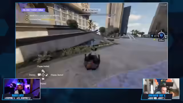 01:21:39Die Spieler diskutieren das E-Sport-Potenzial des Spiels und kommen zu dem Schluss, dass es aufgrund der aktuellen Implementierung und der technischen Probleme kaum vorhanden ist. Der Koop-Modus macht zwar Spaß, aber ein kompetitiver Aspekt im Sinne von E-Sport ist nicht erkennbar. Das Spiel wird als fehlerhaft beschrieben, und die Spieler fragen sich, ob sie lachen oder weinen sollen, wenn sie immer wieder stürzen. Die Mechaniken des Spiels, insbesondere das Grinden und das Abspringen von Rails, werden als unintuitiv und frustrierend empfunden. Trotz der Schwierigkeiten versuchen sie, weitere Missionen abzuschließen und die Spielmechaniken besser zu verstehen, wobei sie feststellen, dass das Spiel sich selbst Steine in den Weg legt.