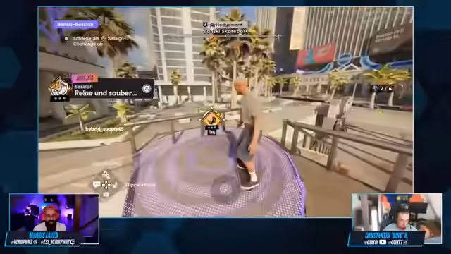 01:28:22Die Spieler haben zwar Spaß am Spiel, sehen aber weiterhin kein E-Sport-Potenzial. Sie vergleichen das Gameplay mit alten Skate-Spielen und stellen fest, dass es sich anfühlt wie vor 20 Jahren. Das Grinden und Abspringen von Rails bereitet weiterhin Schwierigkeiten, da der Charakter oft ungewollt weitergrindet oder Tricks nicht richtig ausführt. Ein Spieler vermutet, dass dies an seinem Controller liegen könnte, schließt dies aber aufgrund des neuen Controllers aus. Die visuelle Darstellung der Tricks wird als merkwürdig beschrieben, da der Charakter teilweise durch den Boden rutscht. Trotz der technischen Probleme und der mangelnden intuitiven Steuerung versuchen sie, die Missionen zu meistern und die Mechaniken zu verstehen.