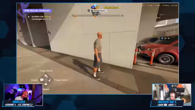 01:19:24Nachdem ein Spieler ein Level-Up erreicht und neue Schuhe erhalten hat, werden plötzlich Challenges sichtbar. Es stellt sich jedoch heraus, dass die Missionen zwischen den Spielern nicht synchronisiert sind. Während der eine Spieler eine Mission annimmt, verschwindet sie für den anderen. Dies führt zu einem Hin und Her, bei dem Missionen angenommen und wieder abgebrochen werden müssen, um eine gemeinsame Basis zu finden. Die Spieler versuchen, gemeinsame Crew Challenges zu starten, aber auch hier gibt es Schwierigkeiten, da nur der Party-Lead Missionen starten kann. Trotz dieser Hürden schaffen sie es, einige Missionen gemeinsam abzuschließen, wobei sie sich über die mangelnde Klarheit des Spiels wundern, warum bestimmte Aktionen nicht möglich sind oder nicht richtig angezeigt werden.