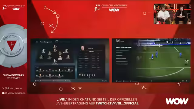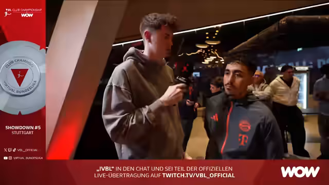 00:09:13Der Streamer Tim Lallinatka begrüßt die Zuschauer herzlich zum fünften Showdown der VBL Club Championship in der MHP Arena in Stuttgart. Es ist die erste Austragung vor Ort an diesem prestigeträchtigen Ort. Die besten 16 Teams der Online-Vorrunde treten an, um im letzten Showdown vor den Playoffs die entscheidenden Punkte für die Gesamtwertung zu sammeln und die Qualifikation für das VBL Grand Final zu sichern.