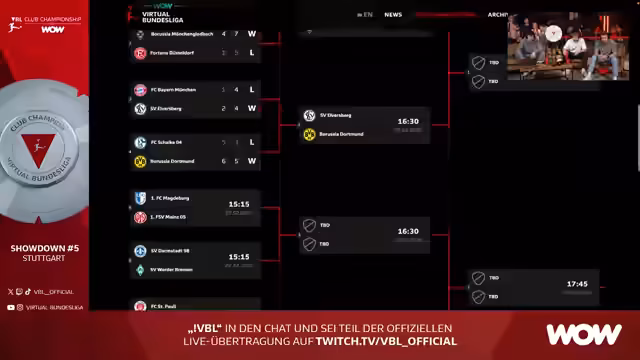 Die besten 16 Teams der VBL Club Championship traten in Stuttgart an, um im letzten Showdown vor den Playoffs die entscheidenden Punkte für die Gesamtwertung zu sammeln. Nachdem einige Mannschaften wie Elversburg für Überraschungen sorgten und der VfB Stuttgart sein Weiterkommen sicherte, sind nun die Halbfinal-Paarungen festgelegt: SC Freiburg trifft auf Werder Bremen, Borussia Dortmund auf Heidenheim.