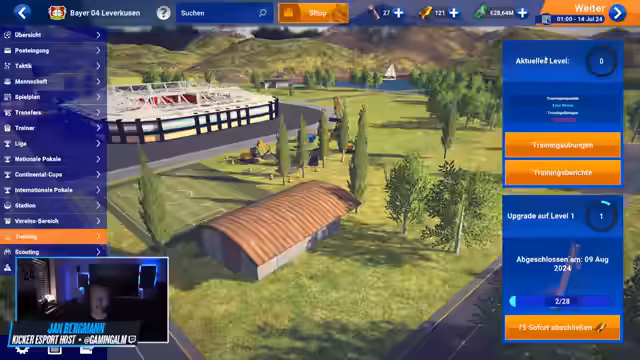 00:13:43Die Steuerung im Spiel wird als intuitiv und einsteigerfreundlich beschrieben, mit klar strukturierten Menüs für Taktik, Mannschaft, Finanzen und Transfer. Die Trainingsphase wird als entscheidend für die Entwicklung der Spieler dargestellt, wobei wöchentliche Trainingseinheiten mit Schwerpunkten durchgeführt werden können. Sponsoringverträge bieten die Wahl zwischen einmaliger oder monatlicher Auszahlung, wobei die Letztere über mehrere Saisons hinweg profitabler ist. Der Aufbau des Stadions und die Erfüllung von Vorstandzielen sind ebenfalls elementare Verwaltungsaufgaben.