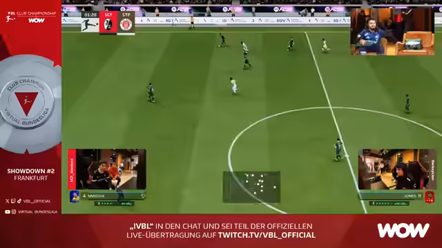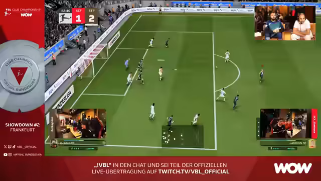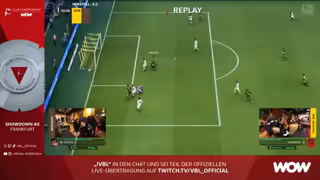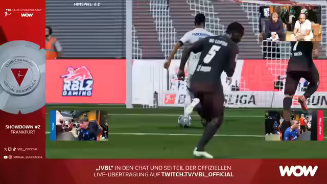 04:39:33Der Stream beginnt mit der Ankündigung des VBL Club Championship by WOW Showdown #2 in Frankfurt. Die erste Partie startet zwischen Gianluca und Berkhay. Unmittelbar danach wird das zweite Spiel zwischen Virgil und Ali G gezeigt. Die Kommentatoren erklären die Besonderheiten des Formats, in dem sie vorerst zwei Spiele parallel übertragen wollen. Die Aufstellung der Teams, insbesondere die Torhüter wie Kahn, Gräber oder Horn, wird diskutiert, wobei deren Stärken und Schwächen bei Flachschüssen analysiert werden.