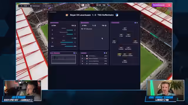 00:04:57Der Kicker eSport Talk startet mit einem Let's Play zum neuen Football Manager 2026, der nach zwei Jahren ein Update erhalten hat und seit Kurzem im Beta-Kanal sowie offiziell mit einem Patch verfügbar ist. Moderiert wird die Sendung von einem Experten, der sich auf den FM26 freut, insbesondere da sein Lieblingsverein HSV in der Bundesliga spielt. Der Experte, bekannt als Jonukas, hat bereits Content auf seinem Kanal veröffentlicht, unter anderem eine Challenge mit Liverpool, bei der er versucht, Florian Wirtz zum Topscorer zu machen. Die Diskussion dreht sich um die ersten Eindrücke des Spiels, insbesondere die Veränderungen im User Interface und die neue Unity Engine, die für die einjährige Pause des FM im letzten Jahr verantwortlich war. Die Menüführung wurde von der linken Seite nach oben verlagert und setzt nun auf Kacheln und Dropdown-Menüs, was für erfahrene Spieler eine Umgewöhnung darstellt, aber für Neulinge übersichtlicher wirken könnte. Auch die Suchfunktion und die FM-Pedia, ein internes Nachschlagewerk, werden als nützliche Neuerungen für Einsteiger hervorgehoben.