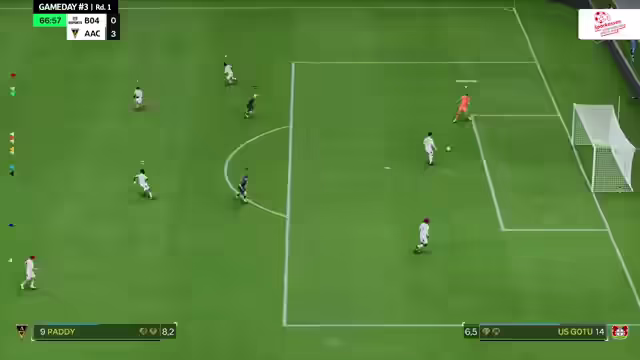 00:42:30Der Spielstand von 4:0 deutet auf einen defensiven Championship-Gewinn hin. Ein Traumpass führt zum 1:4 durch Eierkurt für Bord, die nicht aufgeben. Ein Steilpass ermöglicht Stimmer das 2:4. Kurz darauf erzielt Paul Kautzenbach das 3:4. In Düren gibt es kein Stadion, aber WSV setzt die Erfolgsserie mit einem Treffer fort. Das Teammanagement von Düren spielt in einem ungewohnten 4-2-3-1 System. Ein komfortabler Vorsprung von 3:0 wird kommentiert. T.S. Struck erhöht im Parallelspiel auf 6:1. Eine knappe Abseitssituation wird korrekt erkannt. Wuppertal führt mit 3:0, zeigt aber defensive Schwächen. Ein guter Pass führt zum 4:0 für Wuppertal. Struck erhöht auf 7:1. Wuppertal nutzt eine Pressingsituation und erzielt das 5:0 und 6:0. Aachen führt 2:0 gegen B04. Aachen nutzt die sich öffnenden Räume und erhöht auf 3:0. Bayer Leverkusen versucht ein Pressing, aber Aachen verteidigt gut. Bott erzielt das 7:2 für Leverkusen. Fehler im Aufbauspiel werden bestraft, Bambi erzielt das 4:0. Struck erhöht auf 8:2 und später auf 9:2. Der WSV gewinnt zweistellig gegen Düren. Leverkusen erzielt das 1:4 zur Ergebniskosmetik. Aachen gewinnt 4:1 gegen Leverkusen. Der Paddy von Aachen zieht die Fäden im zentralen offensiven Mittelfeld.