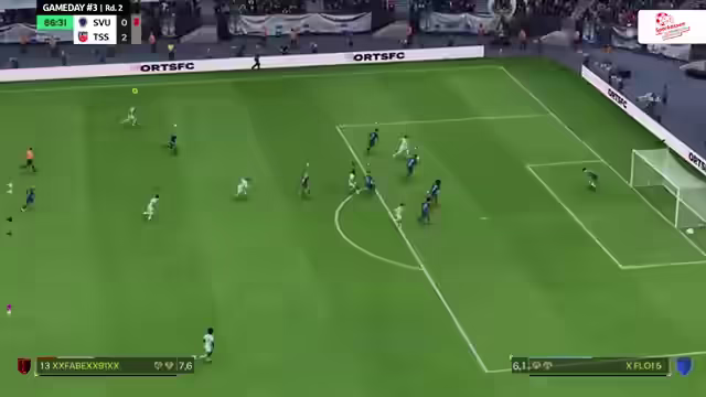 01:34:56Es wird ins Südstadion geschaltet, wo Fortuna Köln gegen Union Felbert spielt. Fortuna Köln hat angekündigt, ihr Spiel umzustellen, um mehr Tore zu schießen. Union Felbert geht über links durch, aber die Situation wird nicht optimal genutzt. Kalle hat die erste Abschlusschance für Fortuna Köln. Taika Hart testet den Torwart von Felbert. Nach einem Eckball gibt es eine spannende Situation im Strafraum von Felbert, die aber von Pechmann geklärt wird. Ein guter Ball über die rechte Seite führt zu einer Parade des Torwarts und einem weiteren Eckball für Fortuna Köln. Fortuna Köln macht in den Anfangsminuten Druck und Felbert hat Schwierigkeiten, ihr eigenes Spiel aufzubauen. Der Druck von Köln bleibt hoch, die ins Final Four wollen. In der Gruppe B zieht sich das Team von Düren aus dem laufenden Spielbetrieb zurück. Union Felbert macht es Köln schwer, insbesondere durch eine enge Defensive. Das 1:0 für Köln fällt nach fast 30 Minuten. Kurz darauf gibt es eine Riesenmöglichkeit für Felbert zum Ausgleich, aber der Torwart schießt den Stürmer an. Im Parallelspiel steht es kurz vor Ende der ersten Halbzeit 0:0 zwischen Korrweiler und Alemannia Aachen. Die Verteidiger von Frelbert haben viel zu tun und der Torwart muss hellwach bleiben. Es wird die anspruchsvolle Rolle des Torwarts im Pro-Clubs-Modus hervorgehoben.