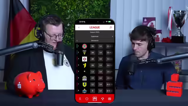 01:29:48Es wird über persönliche Erfahrungen im Spiel gesprochen, einschließlich des erreichten Levels und des Erhalts einer goldenen Karte. Der Vergleich zwischen einem erfahrenen Spieler und einem Anfänger wird humorvoll mit einem Lewis Hamilton und einem Opel Corsa auf der Rennstrecke dargestellt. Man kann den Archetyp wechseln und sich neuen Herausforderungen stellen. Julian erwähnt im Chat den Sieg von Fortuna Köln gegen Bord. Fortuna Köln führt die Tabelle an und trifft als nächstes auf Felbert, die auf dem dritten Tabellenplatz liegen. Felbert könnte zum Zünglein an der Waage werden. Die nächsten Spiele sind Felbert gegen Fortuna Köln und Fühlingen gegen Aachen. Im Hinspiel hatte sich Fühlingen mehr von dem Spiel gegen Aachen erhofft. Die Spiele können auf w.sparkassenverbandsliga.de verfolgt werden. Es wird kurz in die Werbung gegangen, bevor es mit den nächsten Spielen weitergeht. Wer mitspielen möchte, kann sich auf proleague.de informieren und sich möglicherweise Teams aus der Sparkassenverbandsliga anschließen.