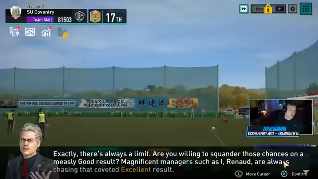 00:09:34Nach einem kurzen Reset beginnt die eigentliche Spielphase als Manager des虚构 Vereins SU Coventry. Das Spielprinzip basiert auf Simulierungen, bei denen der Spieler taktische Vorgaben machen kann, um den Spielaufbau zu beeinflussen. Der Fokus liegt auf der finanziellen Stabilität des Vereins, die durch Siege und hohe Sieg differences verbessert wird. Durch den Sieg gegen Portsmouth wird das Budget aufgestockt und erste Talente wie Mitoma für eine relativ geringe Ablösesumme verpflichtet. Die nachfolgende Verhandlung mit dem Agenten gestaltet sich dabei als interaktives Minispiel.