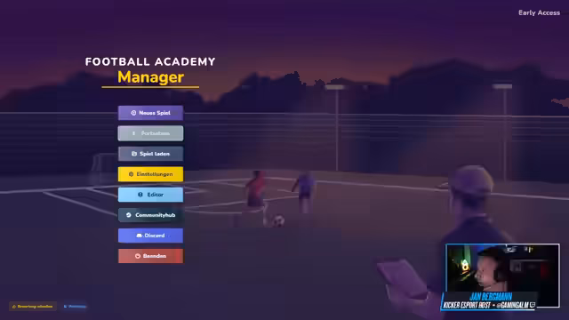 00:53:08Nach den gemischten Eindrücken von Sega Football Club Champions wechselt der Stream zum zweiten Spiel des Abends, dem Football Academy Manager. Dieses Spiel befindet sich noch im Early Access und wurde vom Streamer bereits erworben. Der Zielansatz des Spiels ist grundlegend anders: Hier geht es nicht um den Management eines Profiklubs, sondern um den Aufbau und die Entwicklung einer Fußballakademie zur Entdeckung und Förderung von jugendlichen Talenten. Der Streamer betont die hohe Liebe zum Detail und die bereits sehr gute Übersetzung, was für einen Early Access-Titel heraussticht.