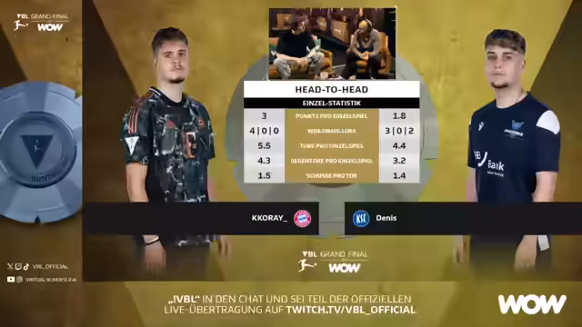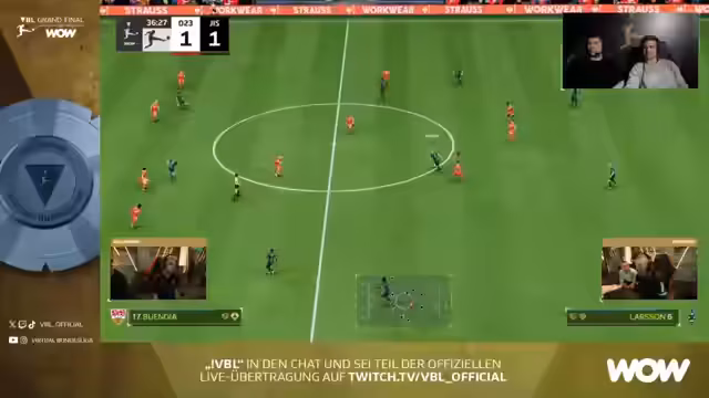 00:00:00Der Live-Stream für die VBL Grand Finals Achtelfinale wurde gestartet. Kommentatoren begrüßen die Zuschauer und stellen die Veranstaltung vor, die als großes Jahr für die Virtual Bundesliga angekündigt wird. Es gibt eine Verbindung zwischen dem Spiel zu Hause und dem Event vor Ort. Kommentatoren wie Bengt und Flo Hauser werden vorgestellt und sprechen über die besondere Atmosphäre des Offline-Events, insbesondere den riesigen BVB-Fanclub, der angereist ist. Auch die Spieler werden angesprochen, um ihre Nerven und die Vorbereitung zu schildern.