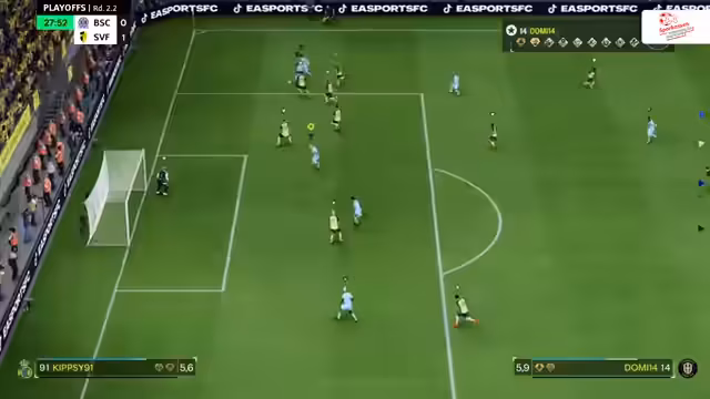 01:35:02Die Teams für die nächste Runde stehen fest: B04 E-Sport, BSC Union Solingen, Oma Bonsand, SV Union Felbert, Fühlingen-Chorweiler und der WSV. Die Paarungen sind Oma Bonsand gegen TS Struck, SV Fühlingen-Chorweiler gegen BSC Union Solingen, Bayern 04 gegen Alemannia Aachen und SV Union Felbert gegen den Wuppertaler SV. Die Turnierleitung gibt die Spielrunde frei, und die Kommentatoren diskutieren die Favoriten. B04 E-Sport hatte in der Vergangenheit Schwierigkeiten gegen Alemannia Aachen, was die kommende Partie besonders spannend macht. Die Fans im Chat sind bereits sehr aktiv und unterstützen ihre Teams. Es wird über die Regeln und die Spielzeit (zweimal sechs Minuten mit Hin- und Rückspiel, bei Gleichstand Golden Goal) diskutiert. Die Kommentatoren betonen den Bildungsauftrag, den digitalen Fußball als Mannschaftssport näherzubringen. Die zweite Runde beginnt mit Fühlingen-Chorweiler gegen BSC Union Solingen und Omerborn-Sandt gegen TS Struck. Der WSV geht früh mit 1:0 in Führung gegen Union Felbert und erhöht auf 2:0. TS Struck führt ebenfalls mit 2:0 gegen Omerborn-Sandt. Aachen führt mit 1:0 gegen B04 E-Sport. Die Spiele sind von intensiven Defensivleistungen und schnellen Kontern geprägt. Der WSV baut seine Führung auf 3:0 aus. Aachen erhöht auf 2:0 und später auf 3:0 gegen B04 E-Sport, was ihre Siegesserie gegen Leverkusen fortsetzt. Fühlingen-Chorweiler erzielt den Dosenöffner zum 1:0 gegen Union Solingen und erhöht später per Elfmeter auf 2:1. Der BSC Union Solingen gleicht jedoch aus. Der WSV führt 5:1 gegen Felbert und Struck 4:0 gegen Omerborn-Sandt. Der BSC Union Solingen erhöht auf 4:0 gegen TuS Board und macht den Einzug in die nächste Runde perfekt. Die Spiele zeigen weiterhin hohe Intensität und Leidenschaft der Teams.