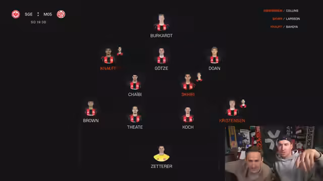 00:55:42Die taktische Ausrichtung von Mainz wird kritisch hinterfragt, insbesondere die inverse Spielweise der Schienenspieler. Es wird diskutiert, warum Spieler wie Vene und Widmer, die eher für Flankenläufe bekannt sind, invers eingesetzt werden, anstatt ihre starken Füße außen zu nutzen, um den Ball effektiver nach vorne zu bringen. Diese Taktik wird seit einigen Wochen beobachtet und als unverständlich empfunden, insbesondere da sie nicht zu einem körperstarken Neuner passt. Im weiteren Verlauf des Streams werden zahlreiche Spielerduelle und Aufstellungsfragen beantwortet, die von den Zuschauern gestellt werden. Empfehlungen werden für Spieler wie Christensen (gegen Lukeba), Leveling (gegen Grifo), Boniface (gegen Hendricks, falls er startet), Undav (gegen Kramaric) und Elkanus (gegen Götze) ausgesprochen. Die Diskussionen zeigen die Komplexität der Kaderplanung und die Unsicherheiten bezüglich Startelf-Einsätzen und Spielerleistungen.