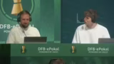 02:38:12Nach dem dramatischen Sieg gibt es ein Interview mit dem siegreichen Spieler Chaser. Dieser zeigt sich noch beeindruckt von der knappen Partie, betont den Respekt für den Gegner Dennis und gibt an, mit etwas Glück im letzten Moment gehandelt zu haben. Er bestätigt, dass alle verbliebenen Teams sehr stark sind und man sich auf den Halbfinaleinzug freut. Der Kommentator fesselt Zuschauer mit der Versprechen, dass der DFB-E-Pokal ein Turnier mit hohem Prestige und einer beachtlichen Preisgeldsumme von 132.000 Euro ist.