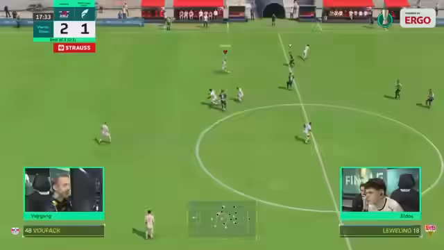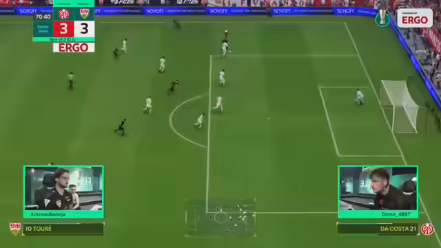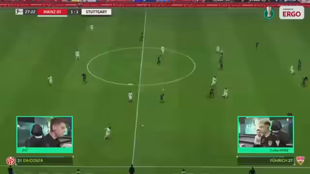 01:21:11Der VfB Stuttgart komplett da, es steht 3:1. Ein schwerwiegender Fehlpass wird bestraft. Gute Balleroberung und ein Steckpass führen zum Tor für Stuttgart. Antonio zeigt seine beste Saisonleistung. Stuttgart spart sich Spiel Nummer 3. Mainz verkürzt auf 2:3. Stuttgart erhöht auf 4:2, aber der Treffer zählt wegen Abseits nicht. Mainz gleicht zum 3:3 aus. Dittmir wird für seine Chancenverwertung gelobt. Stuttgart will wieder in Führung gehen. Es sind noch 19 Minuten zu spielen. Dittmir nimmt sich eine längere Ballpassage. Antonio im Angriff, aber Dietmir verteidigt kompakter. Das Momentum wechselt auf die Mainzer Seite. Nübel hält ein grünes Time-Finish. Antonio hat noch 10 Minuten, um den Speedrun klarzumachen. Toré im Angriff, Leveling über die Außen. Karasor mit Nathey, viele Spieler im Torraum. Antonio trifft zum 4:3 mit einem Trivela. Dittmir ist unter Zugzwang. Stuttgart zieht ins Halbfinale ein. Mainz scheidet aus. Die Handshakes und Gratulationen sind fair. Stuttgart gewinnt mit 2:1 und zieht ins Halbfinale ein.