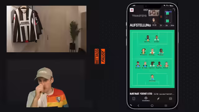 00:40:01Ein Team aus einer 7er Liga, das 67 Millionen im Minus ist, aber beim Verkauf aller Spieler 4 Millionen im Plus wäre, wird besprochen. Es wird überlegt, Hofmann und Pieper auf dem Markt zu holen. Pieper wird als guter Pick für den Freitagabend empfohlen. Die Bank des Spielers wird als entscheidend für die finanzielle Situation angesehen. Knauf wird kritisch gesehen, da die Gefahr von Bahoya besteht. Insgesamt wird das Team als stabil bewertet, insbesondere mit Christensen, Ötzkatscher, Laimar und Diaz. Es wird jedoch betont, dass es ohne Geld schwierig ist, Knauf und Poku zu upgraden. Ein weiteres Team aus einer Elferliga, das in einem 5-3-2-System spielt, wird analysiert. Die Fünferkette wird als geil empfunden. Lukeber sollte bis zum Wochenende fit werden, Christensen's Bounceback muss abgewartet werden. Schlager und Wimmer sollten ausgetauscht werden, da Schlager zu teuer ist für seine Spielzeit und Wimmer bei Wolfsburg selten grüne Balken erzielt. Die Fünferkette wird als konstanter und einfacher Weg beschrieben, um stabile Tausender-Punkte zu holen, auch wenn sie nicht viele Scorer liefert. Die Moderatoren ziehen ihre Trikots aus, da es warm ist, und diskutieren über Fake-Trikots. Boniface wird als Startelf-Kandidat für das Wochenende gesehen. Es wird betont, dass Wimmer und Schlager durch stabile Starter ersetzt werden sollten. Ein Zuschauer erwähnt, dass er länger an Boniface festhält als an seiner Ex-Freundin. Die Diskussion über Retro-Trikots und Sneaker-Seiten zeigt die Breite der Interessen der Community. Ein Team aus einer Fünferliga, das von einem Kickbase-Neuling im vierten Spieltag übernommen wurde, wird analysiert. Trotz des späten Starts hat der Spieler einen Transfergewinn von über 57 Millionen erzielt und liegt auf Platz 3. Das Team wird als gut befunden, insbesondere Kane, Udraogo, Benze, Pieper und Baumgartner. Es wird vorgeschlagen, Poku und Stani abzugeben, um Karl, Bischof, Kufall und Groß von der Bank zu holen.