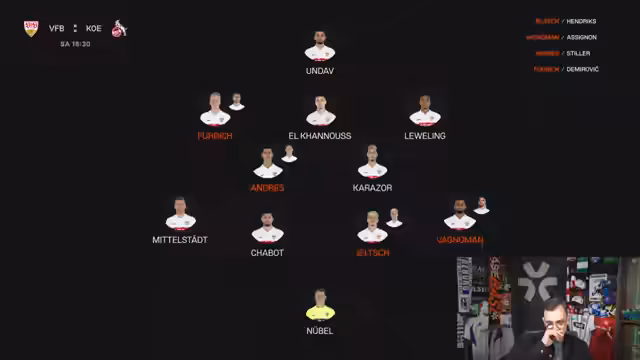 00:59:40Für Stuttgart wird Elkanouche auf der 10er Position nach einer Pause wieder starten. Auf der rechten Abwehrseite wird zwischen Führig und Demirovic entschieden, wobei Führig favorisiert ist. Assignion könnte eine Pause bekommen. Auf der linken Seite wird ein Duell zwischen Hendricks, Jeltsch und Mittelstädt erwartet, wobei Hendricks als Favorit gilt. In Köln könnte Schmid wieder in der Startelf stehen, während das Thema El Mala nach Aussagen von Quasinyok entspannt ist, es aber weiterhin Diskussionen um Spielzeit und Zukunft gibt.