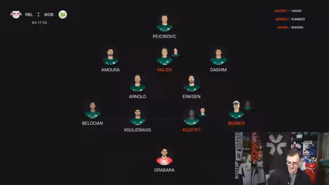 00:26:11Die Zusammenfassung der restlichen Samstagspiele wird fortgesetzt. Bei Leverkusen wird Palacios als gesetzt angesehen, während bei St. Pauli Sands als wichtiger Stabilisator fungiert. Spieler wie Prömel bei Hoffenheim und Bangula bei Bremen bleiben größere Fragezeichen. Der Streamer geht auf zahlreiche Chat-Fragen ein, z. B. Omari fällt aus, wodurch Jatta bei Hamburg startet. Auch Torunariga und El Fadli konkurrieren um den Platz in der Dreierkette. Entscheidungen für oder gegen Spieler wie Prass, Gruder oder Dorn werden getroffen und begründet.