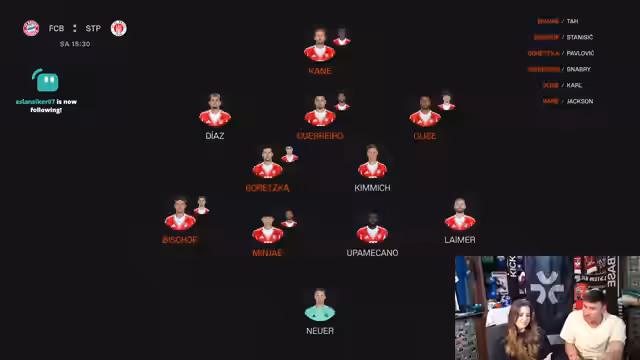 01:00:53Die Analyse der Spielerduelle wird fortgesetzt, wobei Xaver Schlager gegenüber Vieira bevorzugt wird, da Schlager als die sicherere Wahl gilt. Bei der Auswahl von zwei aus drei Spielern (Gröll, Neuhaus, Engelhardt) werden Neuhaus und Gröll vorgeschlagen, wobei Engelhardt nicht aufgestellt werden sollte. Weitere Duelle sind Götze gegen Khedira (Götze), Haidari gegen Pieper (Pieper) und Minjah gegen Prömel (Minjah). Die Experten diskutieren auch über die Punktepotenziale von Spielern wie Dacosta und Gnabry, wobei Gnabry selbst in kurzer Spielzeit viele Punkte erzielen kann. Bei der Entscheidung zwischen Wavro und Goretzka wird Goretzka bevorzugt, und Adeyemi wird Amura vorgezogen. Die abschließenden Duelle umfassen Wavro gegen Stay (Stay), Nebel gegen Ansar (Ansar), Beste gegen Masar (Masar) und Ansar gegen Jackson (Jackson). Die Experten versuchen, so viele Fragen wie möglich zu beantworten, bevor der Stream endet, und geben dabei auch persönliche Einblicke in ihre eigenen Teamstrategien.