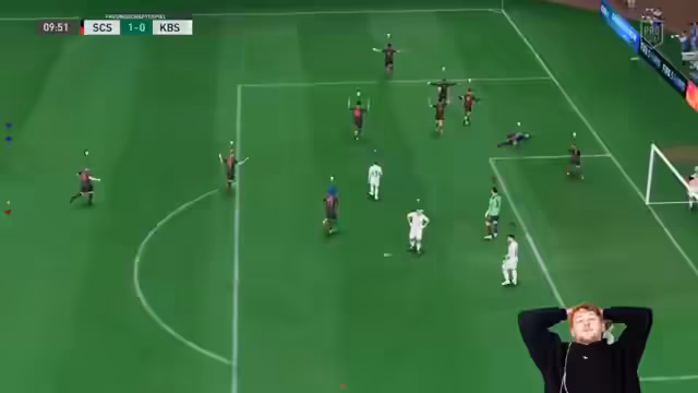 00:40:54Das Spiel wird von Seitenwechseln und gezielten Angriffen bestimmt. Der Gegner agiert provokant und kontrolliert den Ball, schafft aber keine Torchancen. Das eigene Team verteidigt mit Zweikampfstärke und verlagert den Ball schnell. Ein Fehler in der Abwehr führt zu einer gefährlichen Szene, die aber souverän geklärt wird. Der Führungstreffer wird mit einem漂亮 (hübsch) Abschluss gefeiert.