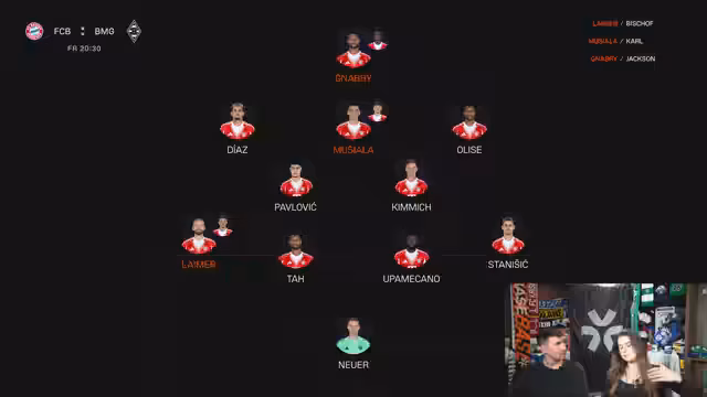 00:59:53Der Streamer diskutiert intensiv über die Zusammensetzung der Startelfe für den anstehenden Spieltag. Dabei geht es um konkrete Spielerauswahl-Entscheidungen für verschiedene Positionen und Teams. Beispielsweise wird debattiert, ob Haidari, Vera oder Toure sowie Nzuki oder Beste die bessere Wahl sind. Auch werden mögliche Formationen besprochen, wie eine mit Bahoya, Masa oder Musiala, falls Musiala nicht startet. Die Analyse ist detailliert und behandelt Spieler wie Lindenmeier, Hotel, Ulys, Milosevic und El Fadli.