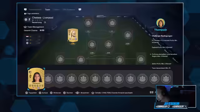 00:05:01Der Stream beginnt mit einer herzlichen Begrüßung der Zuschauer, die auf kicker.de, in der App und auf Twitch aktiv sind. Es wird der zweite Stream zum Thema Trading rund um EAFC 26 thematisiert, bei dem über 500 Zuschauer begrüßt werden. Der Fokus liegt auf einem möglichst entspannten Abend mit musikalischer Untermalung, deren Lautstärke vom Chat gesteuert werden kann. Der Streamer greift ein aktuelles Thema auf: die Top-Partien des Tages, wie Chelsea gegen Liverpool, und gibt einen ersten Überblick, welche Spieler für diese Vereine benötigt werden. Die Hassliebe zu FIFA/EAFC wird angesprochen und es wird festgehalten, dass das Trading nach dem Full Release weiterhin eine wichtige Rolle spielt.