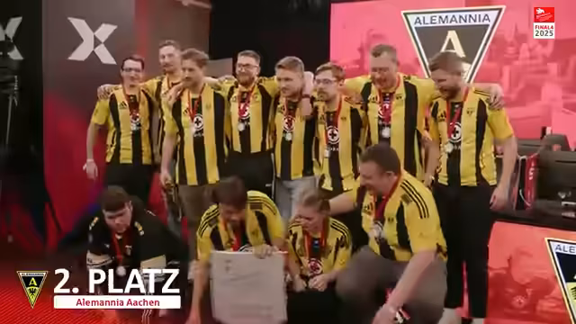 02:15:43Nach 32 Minuten gelingt dem ESC Rellinghausen der Ausgleich zum 1:1 im Rückspiel nach einem Ballverlust von Alemannia Aachen. Trotz des Ausgleichs benötigt Rellinghausen noch zwei weitere Treffer, um ins Finale einzuziehen, was sie zu einer totalen Offensive zwingt. Dies eröffnet Aachen Konterchancen, die sie gefährlich nutzen können. Alemannia Aachen hält sich durch starke Defensivarbeit im Spiel, muss aber wachsam bleiben, da zwei Tore in einer Halbzeit möglich sind. Am Ende sichert sich Alemannia Aachen den Finaleinzug mit einem Gesamtergebnis von 4:1 (2:0 im Hinspiel, 2:1 im Rückspiel). Der Torhüter von Aachen wird für seine Glanzparaden gelobt, die maßgeblich zum Erfolg beitrugen. Rellinghausen kämpfte, konnte aber die entscheidenden Chancen nicht nutzen.