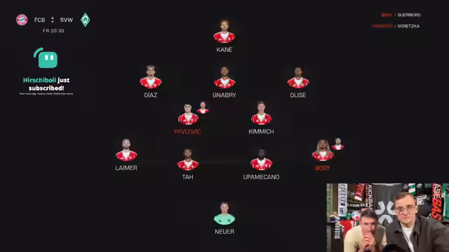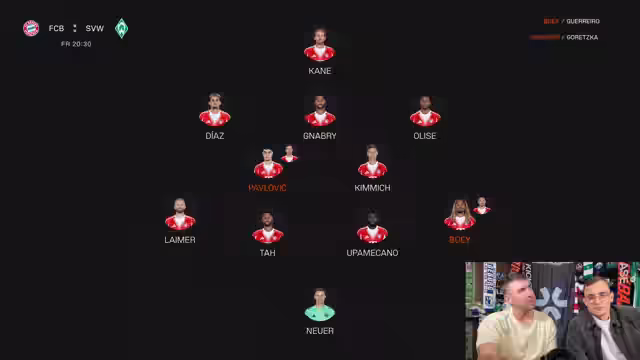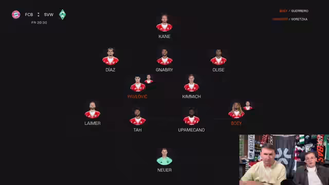 00:10:19Die Sendung startet aus den Sky Studios, wo den ganzen Tag über Inhalte produziert werden. Es wird auf die YouTube-Show und das bevorstehende Spiel Bayern gegen Bremen hingewiesen, zu dem ein Live-Kommentar geplant ist. Riason Bench wird als Experte begrüßt und es werden die Startaufstellungen der Teams sowie die Spielerduelle der Kickbase-Community besprochen. Der Fokus liegt auf einer umfassenden Analyse der Startaufstellungen, wobei einige Spieler intensiver und andere weniger intensiv betrachtet werden. Ein besonderer Dank gilt Manny für seinen Auftritt im Fernsehen, der nun live im Studio anwesend ist. Es wird die Kickbase-Affinität von PKs, insbesondere von Hoffenheim und Leipzig, hervorgehoben, wo Kickbase-Fragen gestellt werden. Die Herausforderung, Bremer Spieler gegen Bayern aufzustellen, wird aus Kickbase-Sicht diskutiert, wobei die allgemeine Einschätzung ist, dass Bayern derzeit sehr stark ist. Abschließend wird auf eine Push-Nachricht um 17:10 Uhr hingewiesen, die aktive Nutzer direkt in die PK einlädt, um mit den Bayern-Analysen zu beginnen.