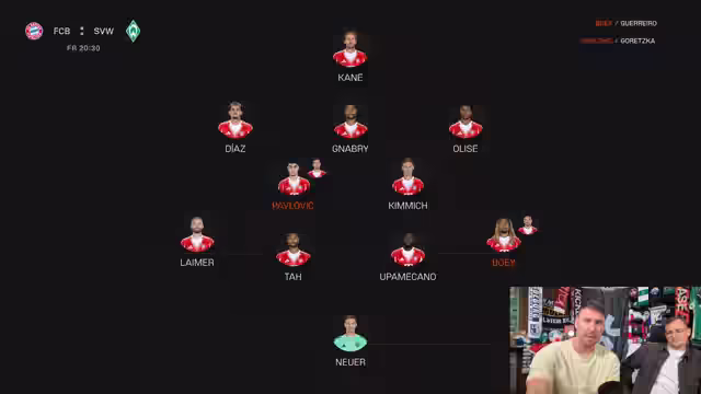 01:07:11Es werden weitere Spielerduelle diskutiert, darunter Essende oder Wuskowitsch, Karl hat Stoker aufstellen oder Stöger, Friedl oder Königsdörfer und Philipp oder Suzuki. Es folgen Vergleiche zwischen Hermann oder Kölle, Bunani oder Teller, Banzusi oder Trimmel und Badé oder Burke. Es wird ein Versprechen gegeben, so lange live zu bleiben, bis weniger als 1.000 Zuschauer da sind. Es werden weitere Spielerduelle wie Maier oder Mainka, Dompeh oder Matanovic, Ramai oder Hoyer, Wolf oder Sugawara und Maier oder Friedl thematisiert. Es werden auch Amiri oder Tillmann und Stöger oder Kimmich diskutiert. Es werden weitere Spielerduelle wie Damar oder Bellingham, Höhler oder Karl und Ramay oder Santosh besprochen. Es folgen Vergleiche zwischen Bakayoko oder Chai V, Matanovic oder Adamu und Lemperle oder Kaminski. Es werden weitere Spielerduelle wie Masengo oder Beste thematisiert.